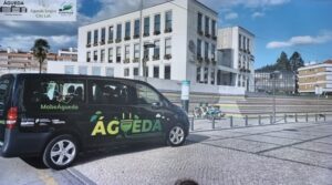 Carla Couceiro explicou ainda em que consiste o MobeÁgueda, que teve a sua estreia em setembro de 2021: “trata-se de um transporte a pedido, realizado com uma viatura 100% elétrica, zero emissões, contribuindo assim para a descarbonização. O objetivo deste transporte é oferecer uma solução de mobilidade sustentável, entre as cotas baixa e alta da cidade, apoiando toda a comunidade nas suas deslocações.”